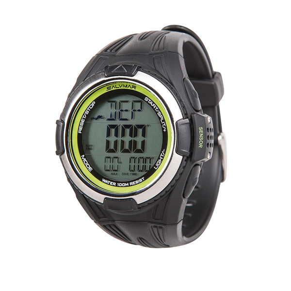 Ronilački sat sa dubinomjerom, vremenskim trajanjem zarona, vrijeme odmora na površini, satom i štopericom, temp. mora, alarmom trajanja zaraona i dubine.
